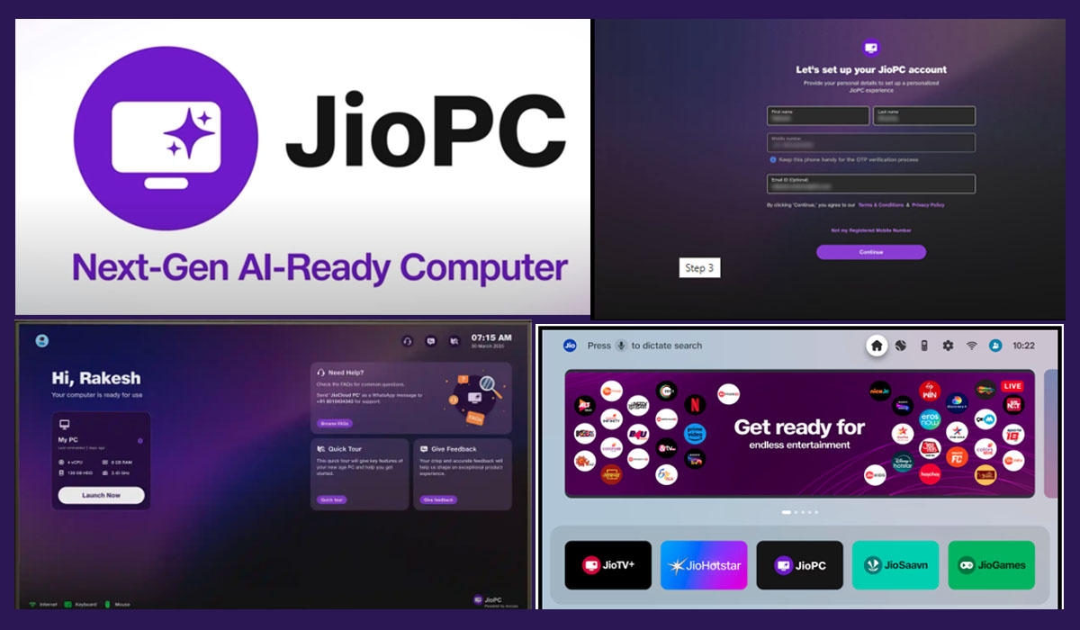 - மலிவு விலை: ஜியோபிசி சேவை ரூ. 5,499 என்ற விலையில் தனியாக வாங்கக் கிடைக்கும். ஜியோஃபைபர் (JioFiber) பிராட்பேண்ட் திட்டங்களுடன் இது இலவசமாக வழங்கப்படும் வாய்ப்பும் உள்ளது. இதன் மூலம், பாரம்பரிய கணினிகளை வாங்க முடியாதவர்களுக்கு இது ஒரு மலிவு விலைத் தீர்வாக அமைகிறது.
